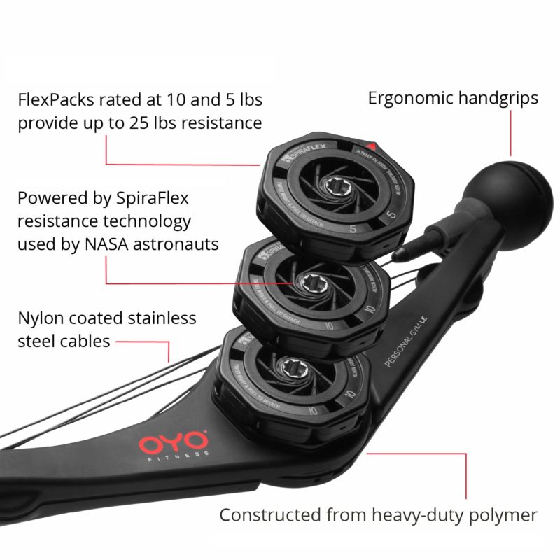 - NASA SPIRAFLEX TECHNOLOGY REPLACES WEIGHTS: The OYO Gym’s SpiraFlex resistance technology has been used for over 10 years on the International Space Station to keep astronauts fit. NASA study proved SpiraFlex increased muscle size and strength as much as free-weights.